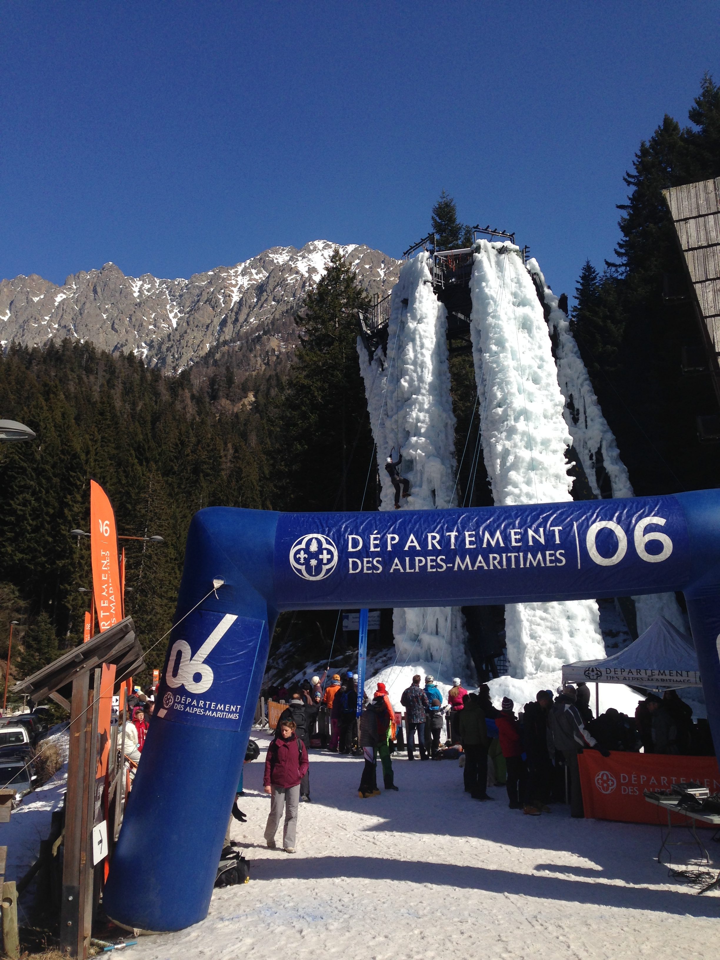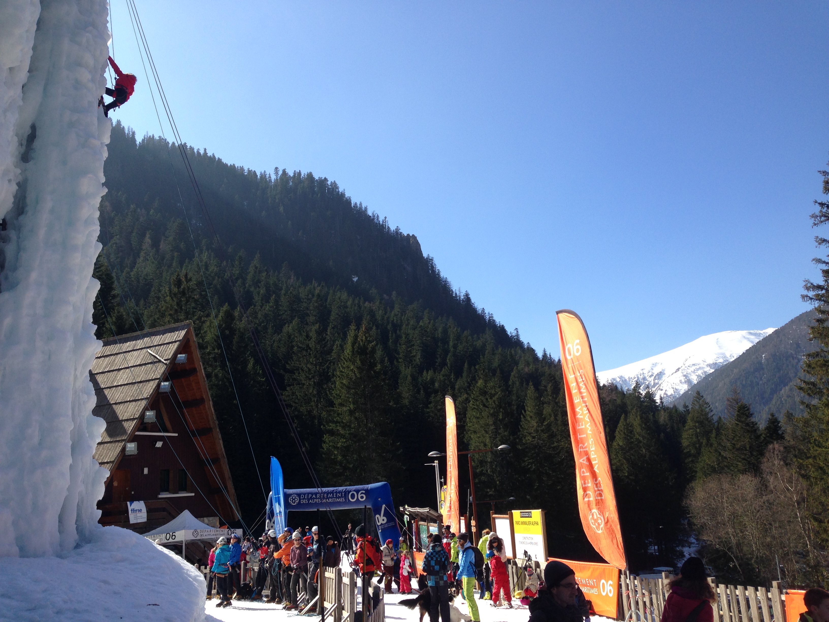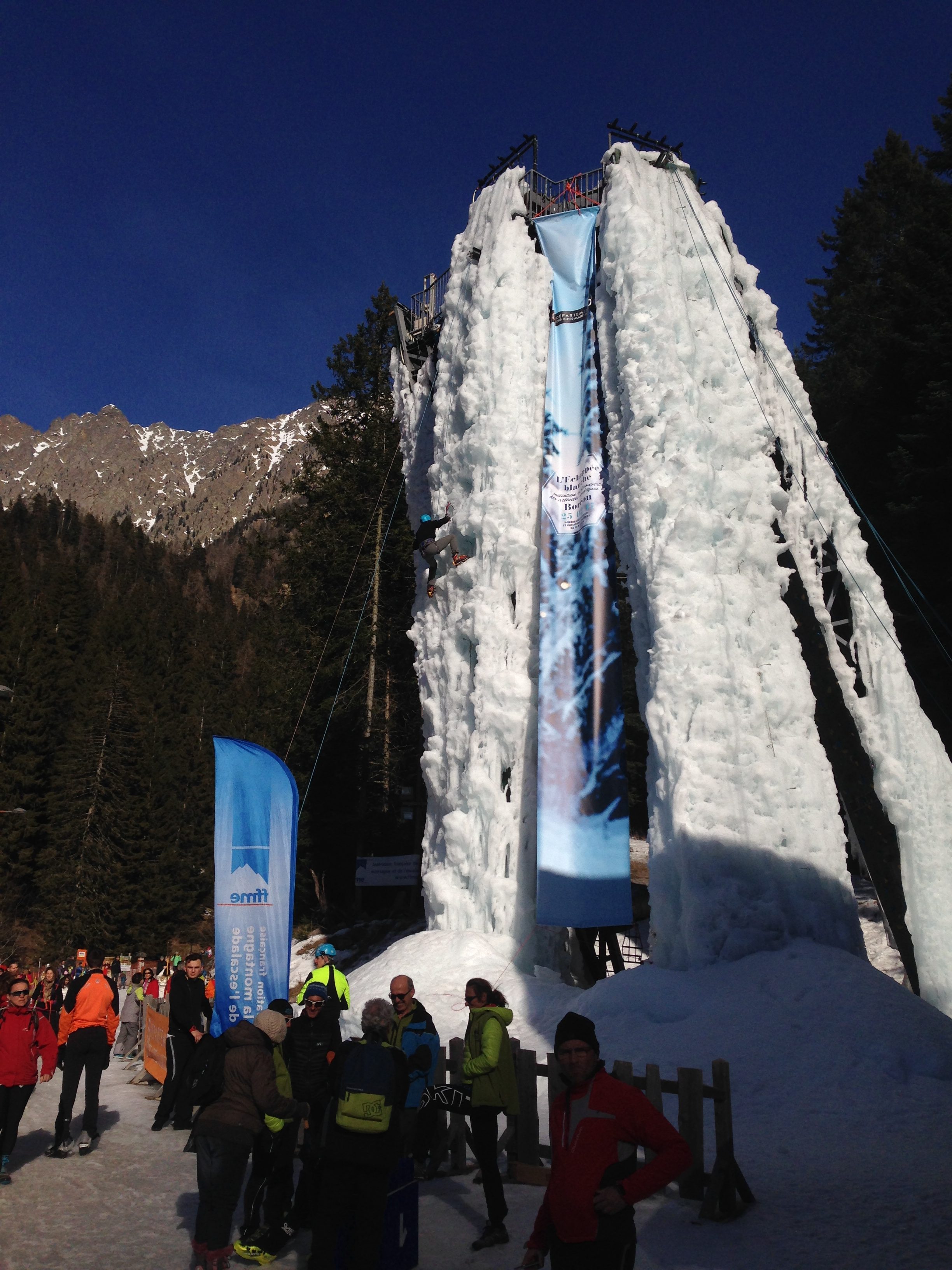 la cascade de glace artificielle du Boréon ouvrira dès 8 heures 30 (au lieu de 10 heures) ce samedi 25 février, jour de l’Echappée Blanche.